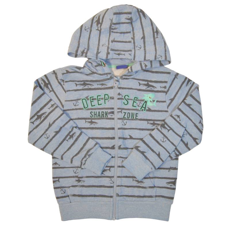 Jopica št. 110-116 v modri barvi, s črnimi črtami in potiskom, ter s kapuco in žepi.