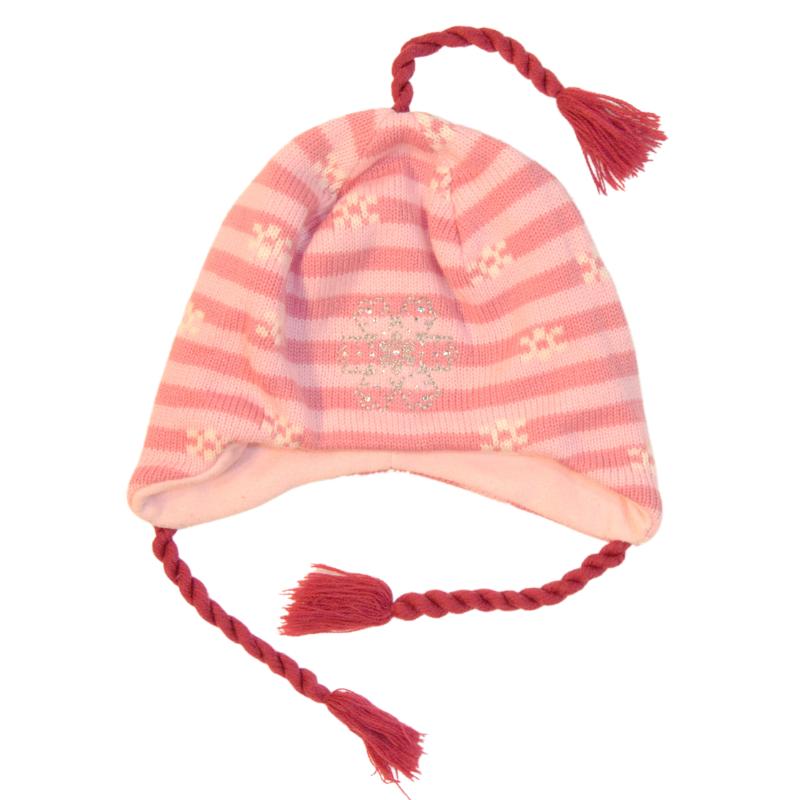 Kapa št. 68 je črtasta, v roza barvi, ima 2 trakca za zavezat, podložena je s flisom.