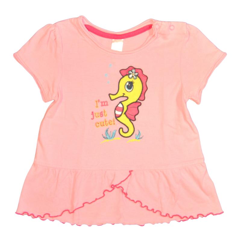 Majica št. 74 s kratkimi rokavi v roza barvi in s potiskom morskega konjička.