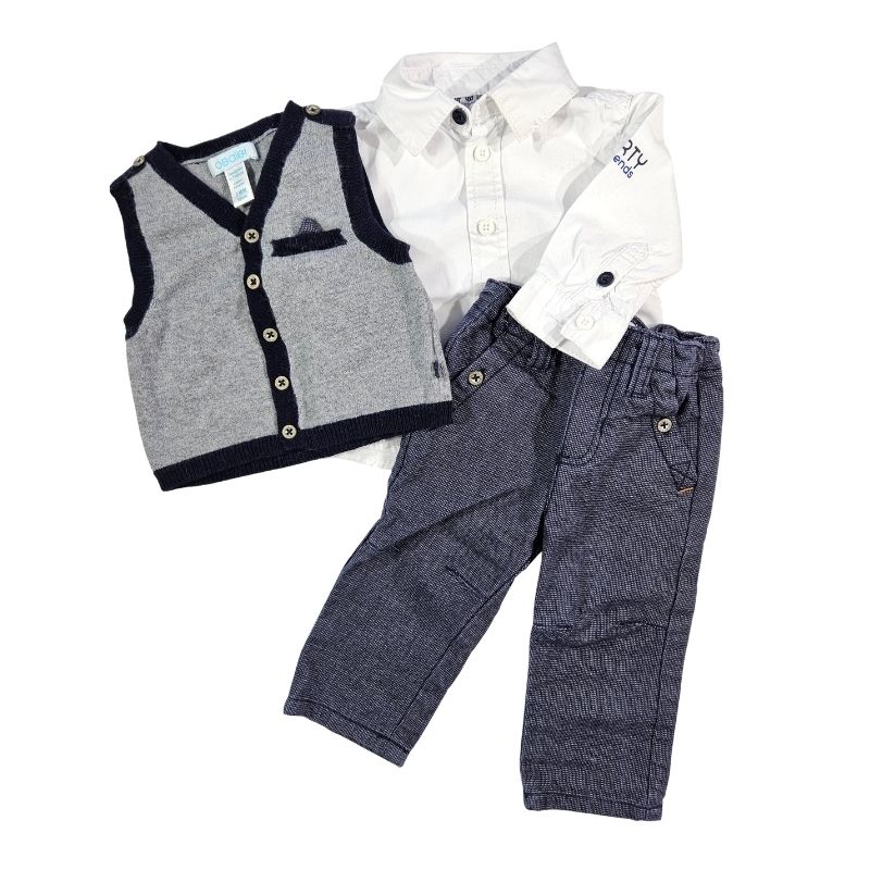 Komplet srajčke, hlač in brezrokavnika. Hlače imao uravnavanje v pasu.