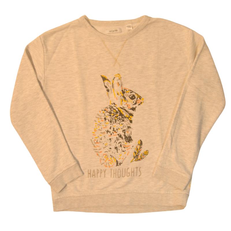 Pulover št. 140 v sivi barvi, s potiskom zajca in napisom.
